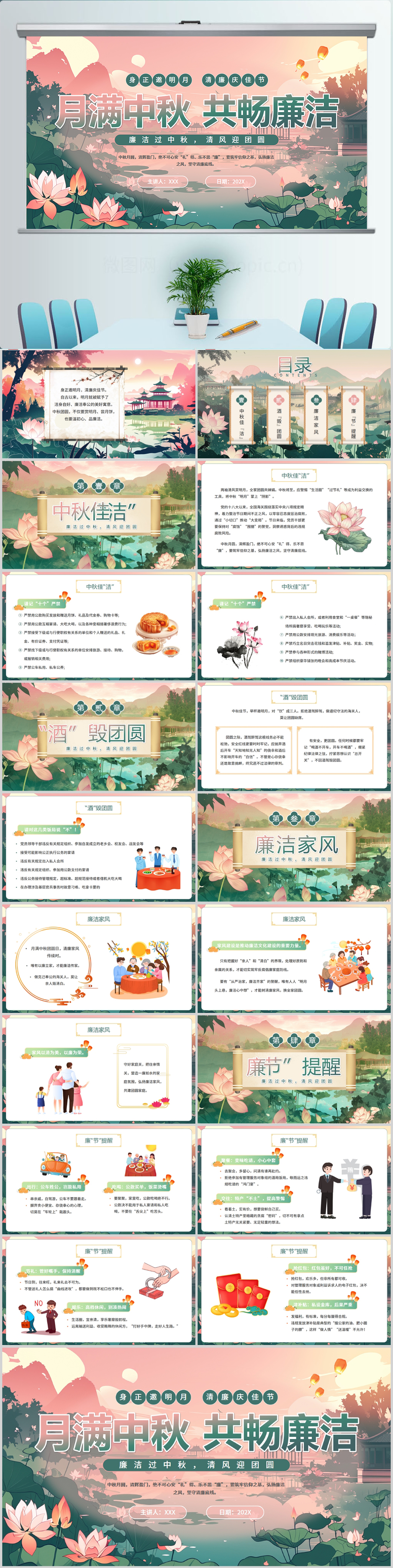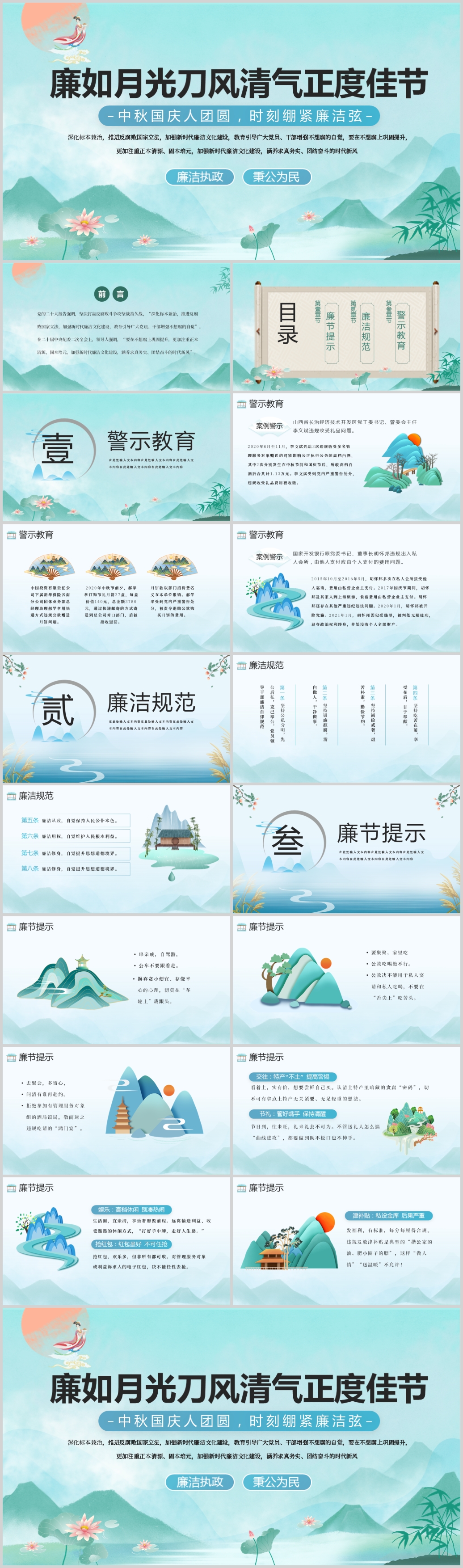 廉如月光身洁风清气正度佳节PPT