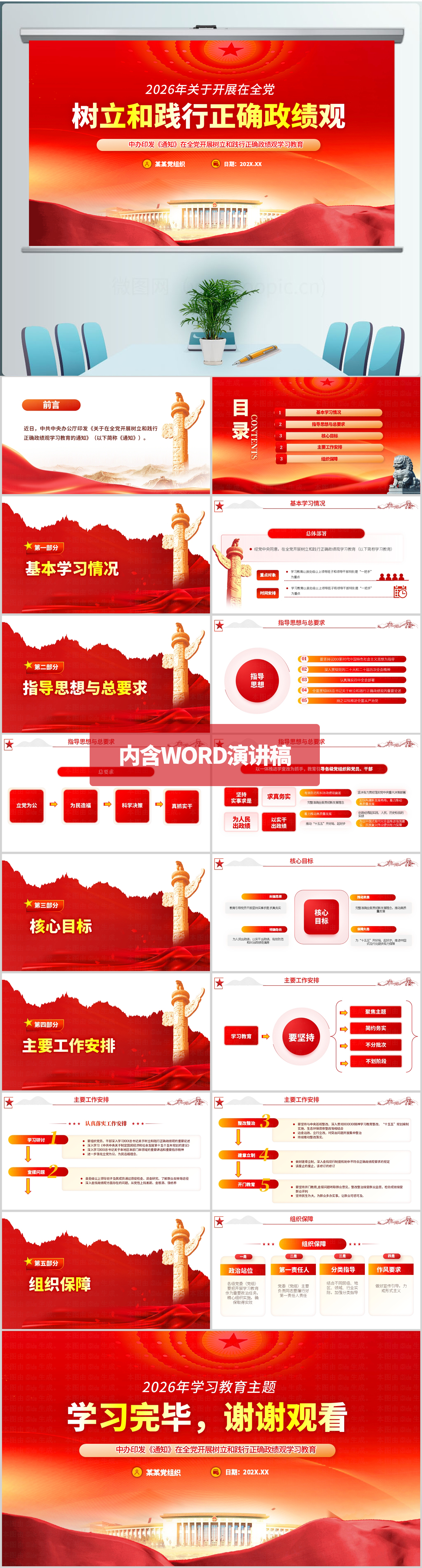> 2026政府工作报告学习内容解读ppt模板(内含WORD演讲稿)