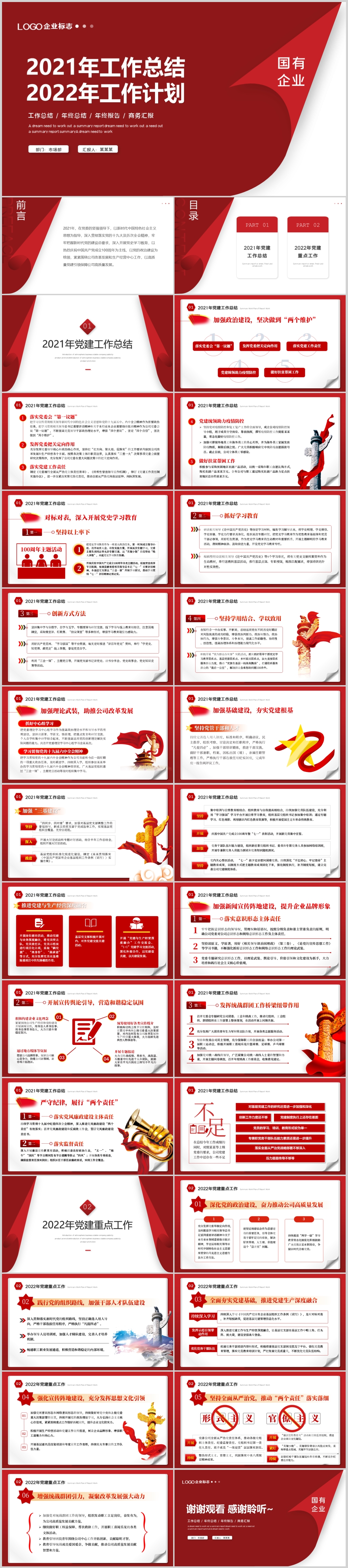 红色国企党委2021党建工作总结2022工作计划PPT模板