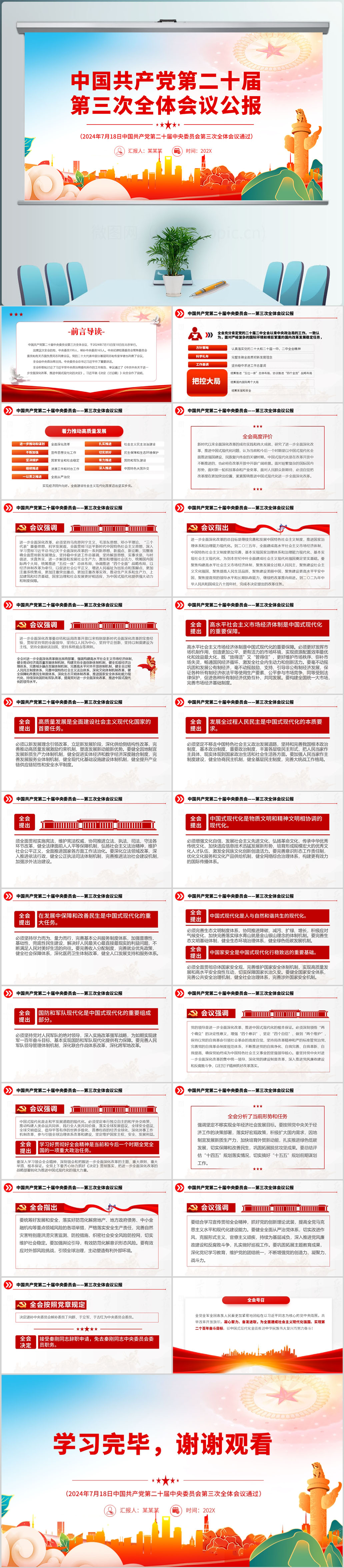 学习二十届中央委员会第三次全体会议公报PPT模