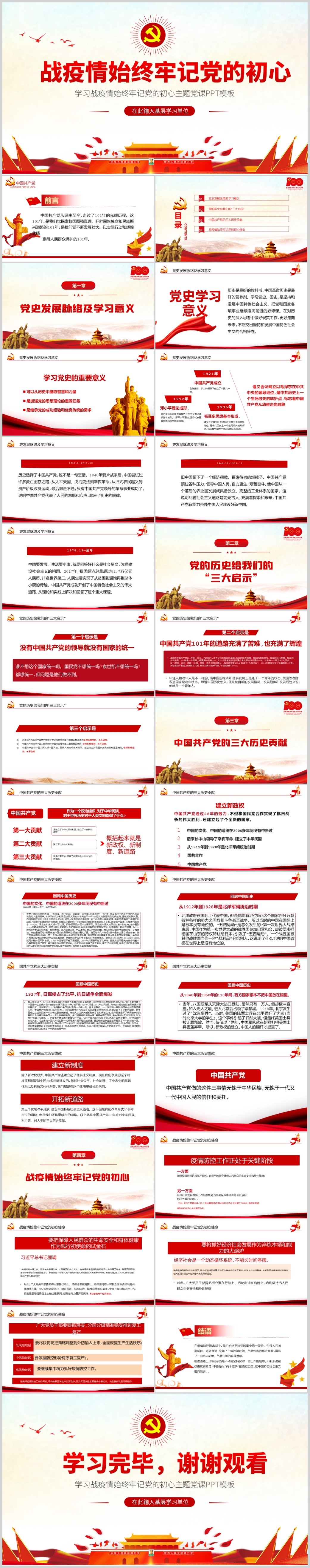 学习战疫情始终牢记党的初心主题党课PPT模板