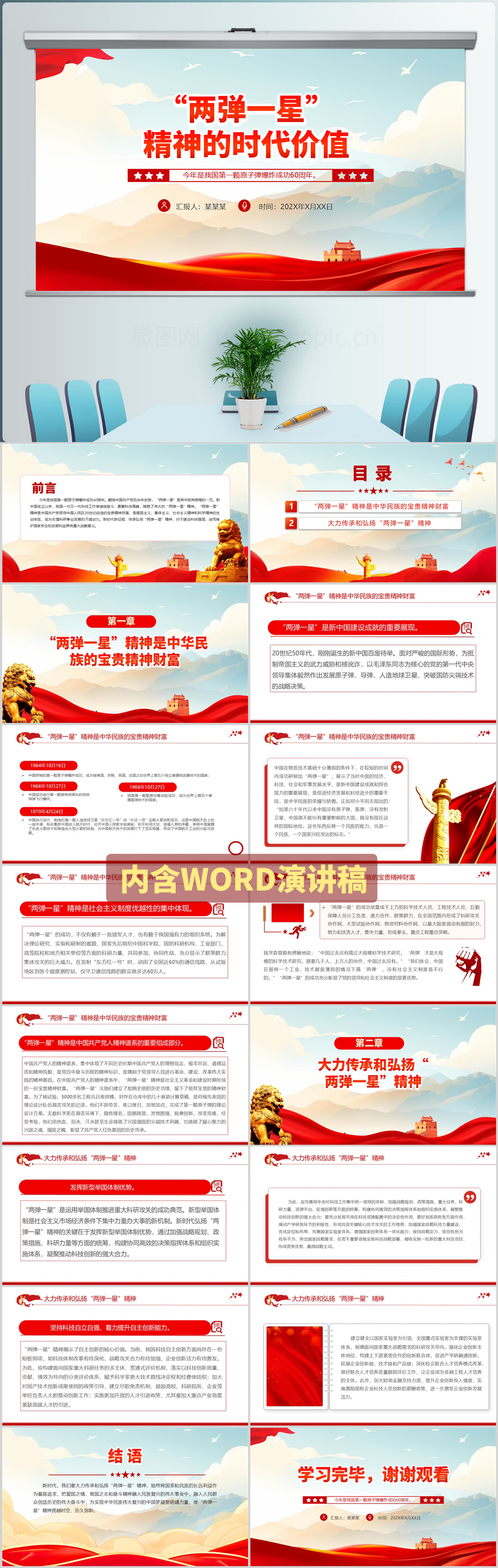 2024弘扬“两弹一星”精神的时代价值党课PPT模板