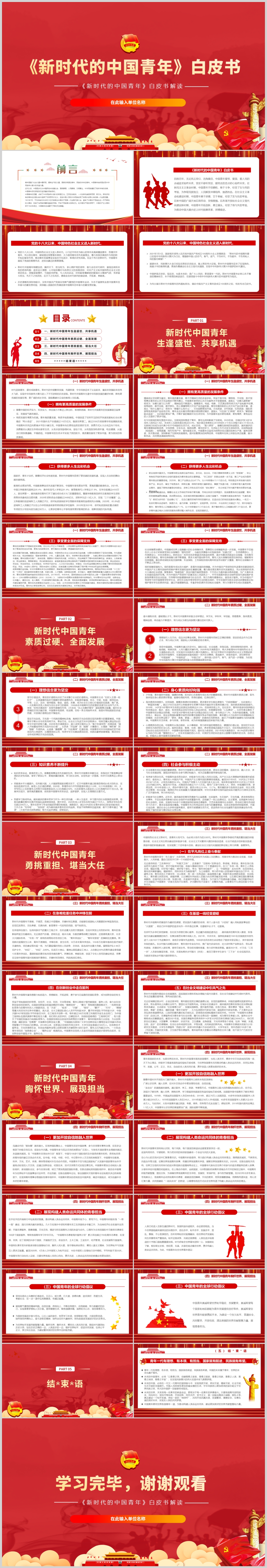 红色新时代中国青年白皮书学习解读PPT模板