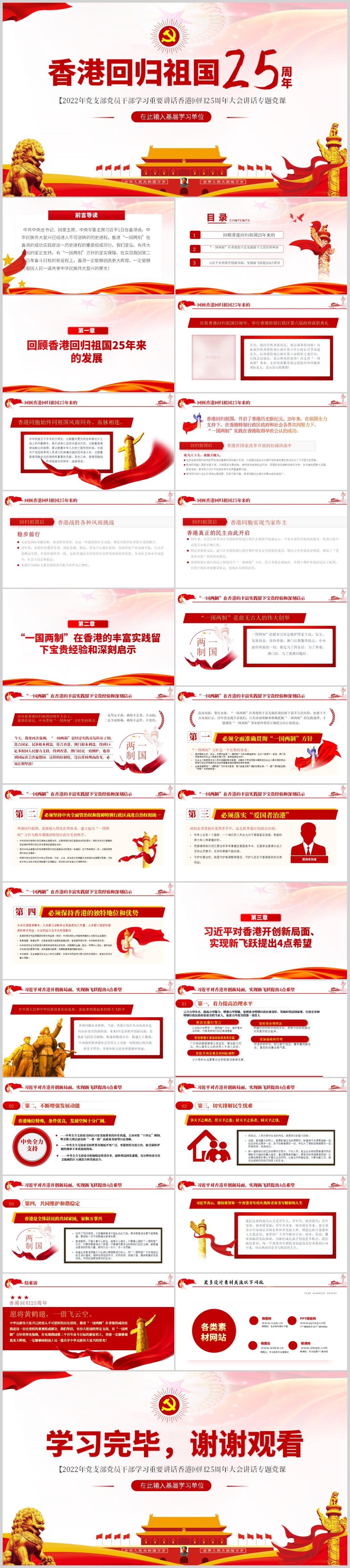 2022香港回归祖国25周年大会讲话解读党课PPT模板