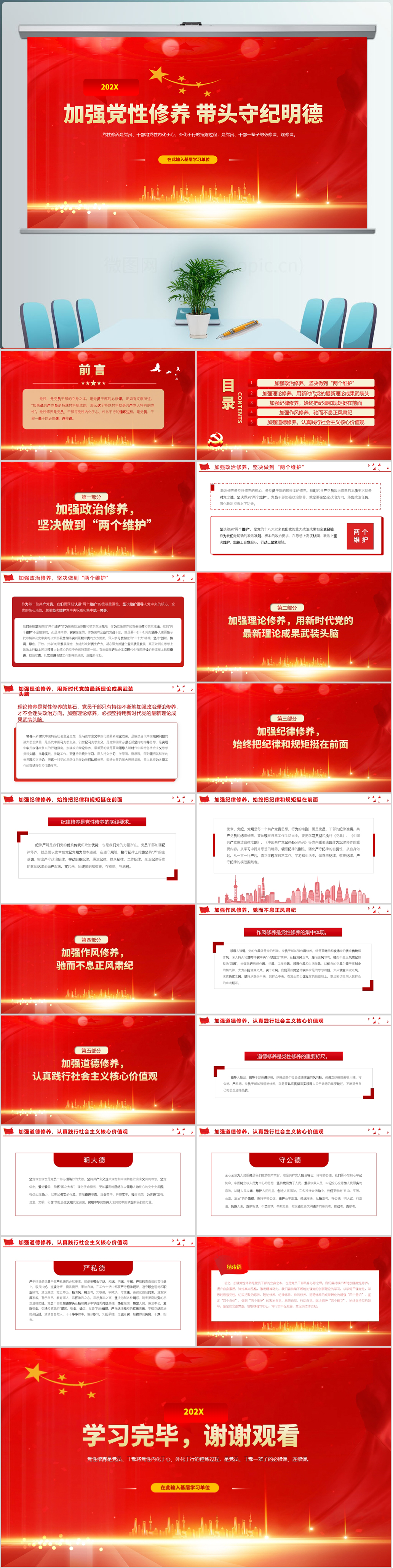 红色如何加强党员干部党性修养党员培训党课p