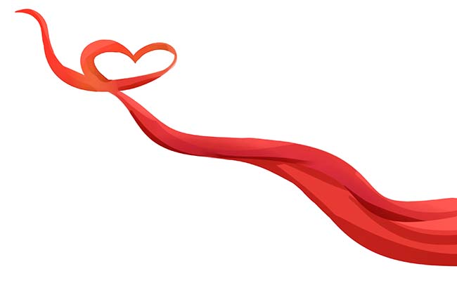 红色爱心丝绸丝带免扣PNG元素PPT素材插画