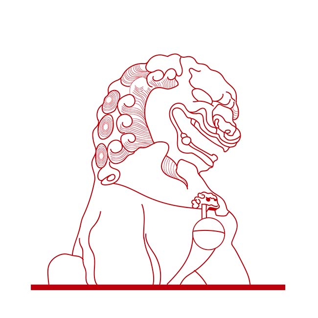> 手绘石狮子雕塑党建元素PNG素材插画