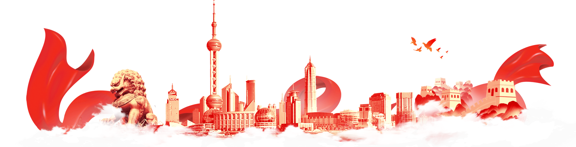 红色云层长城建筑石狮子丝带党建免扣PNG元素P