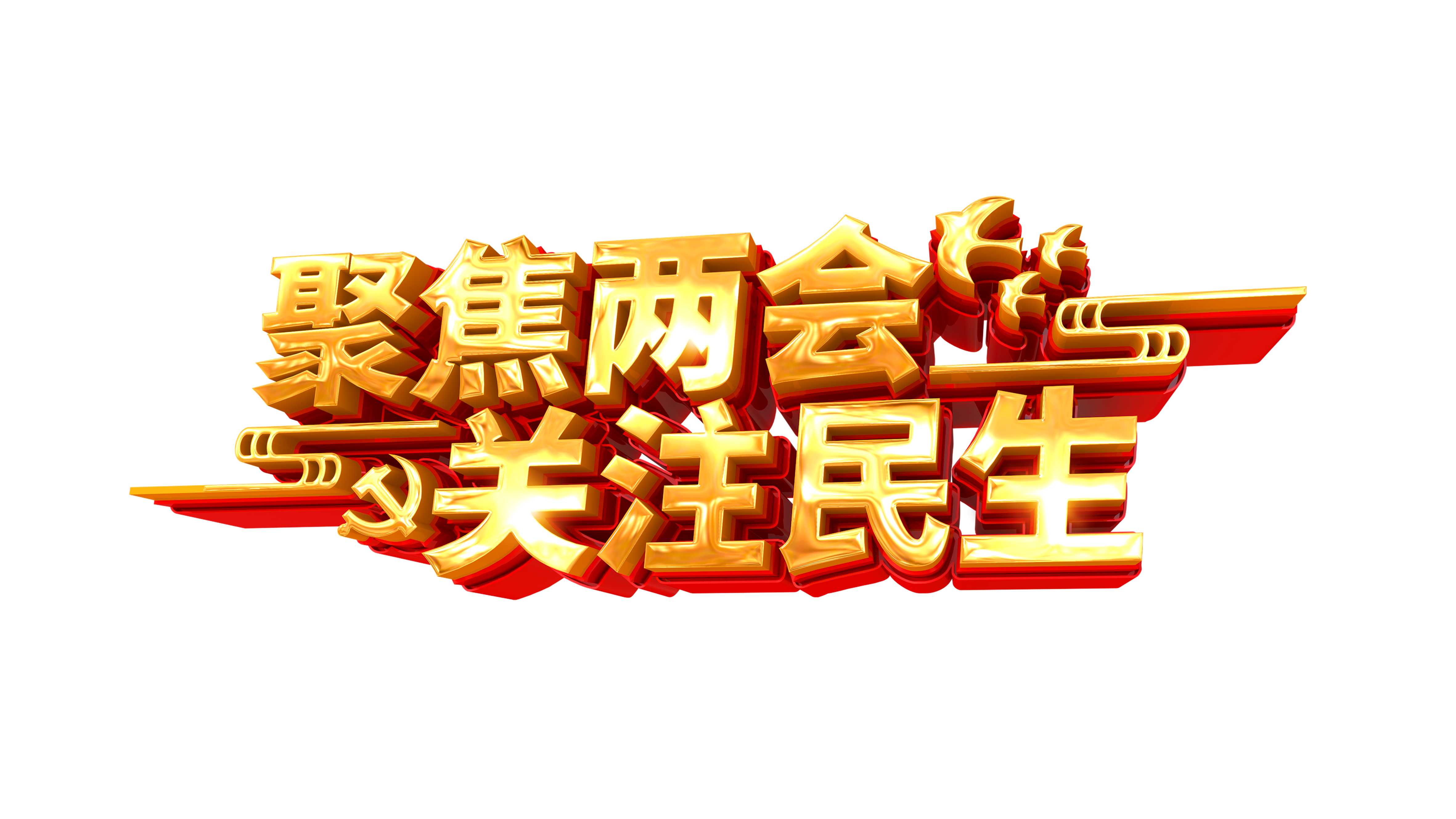 聚焦两会金色字体免扣PNG元素艺术字PPT素材插画