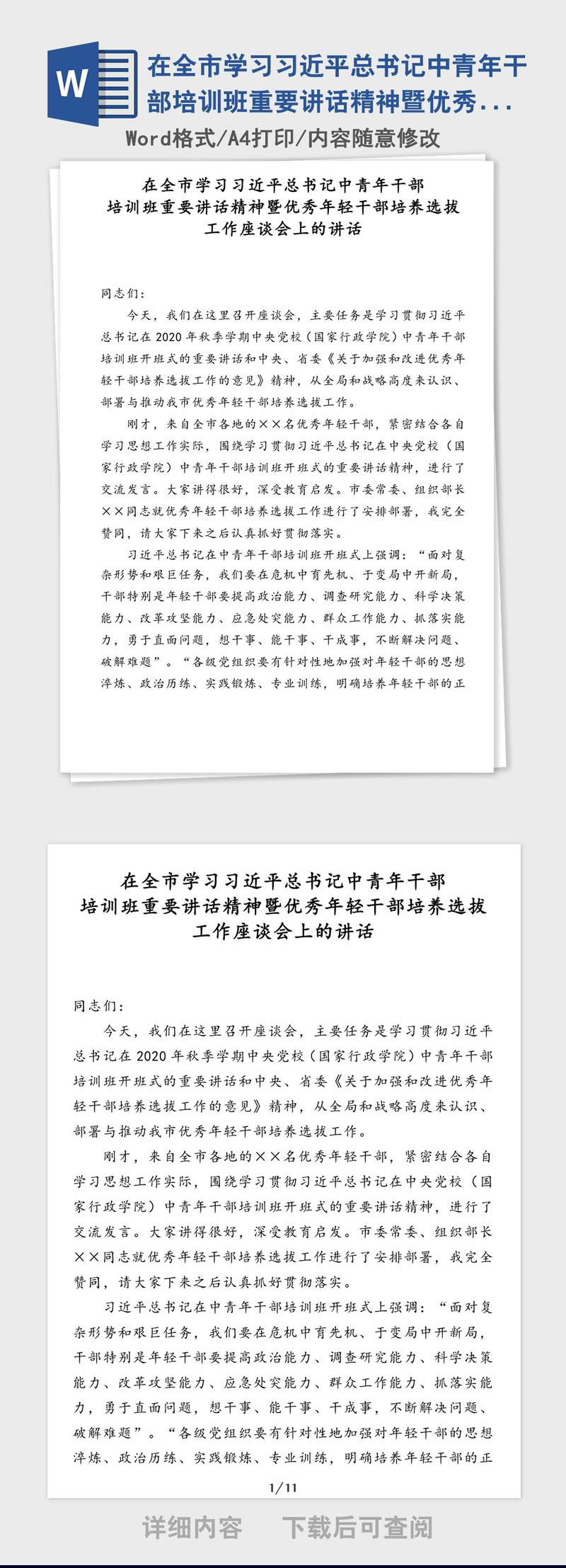 学习中青年干部培训座谈会上的班重要讲话精神