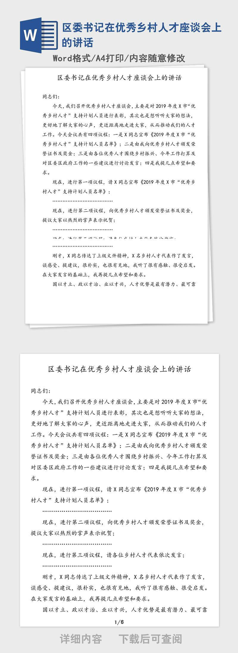 学习区委书记在优秀乡村人才座谈会上的讲话党