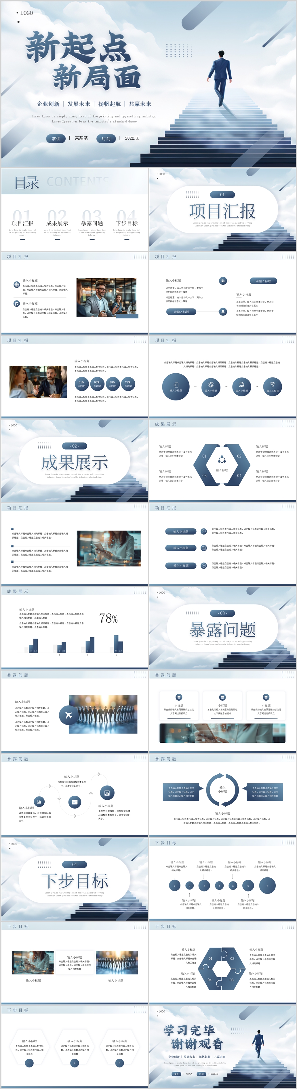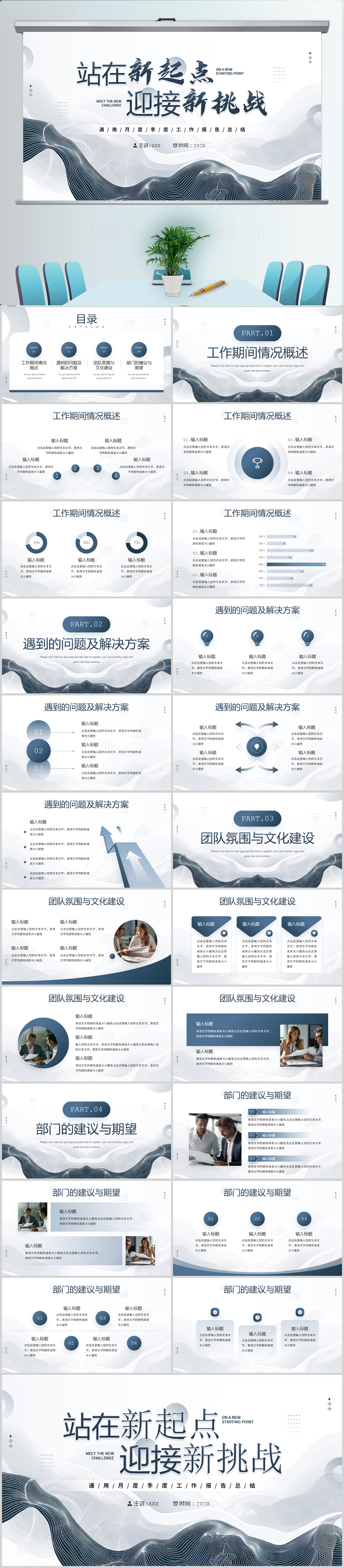 蓝色励志风新起点新局面工作总结通用PPT模板