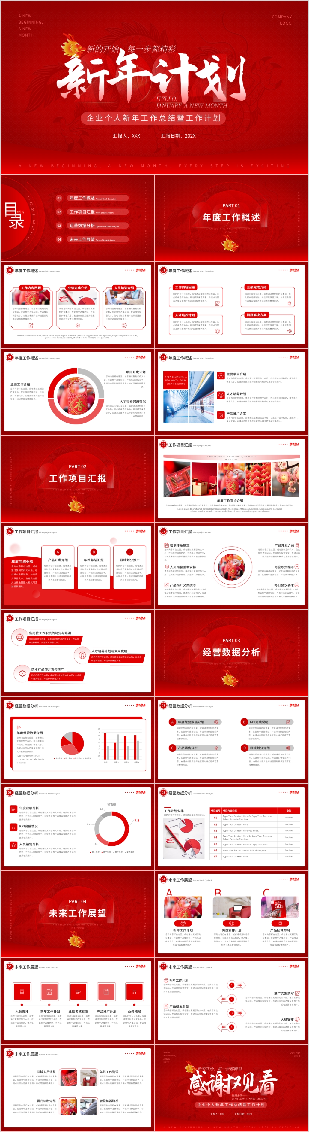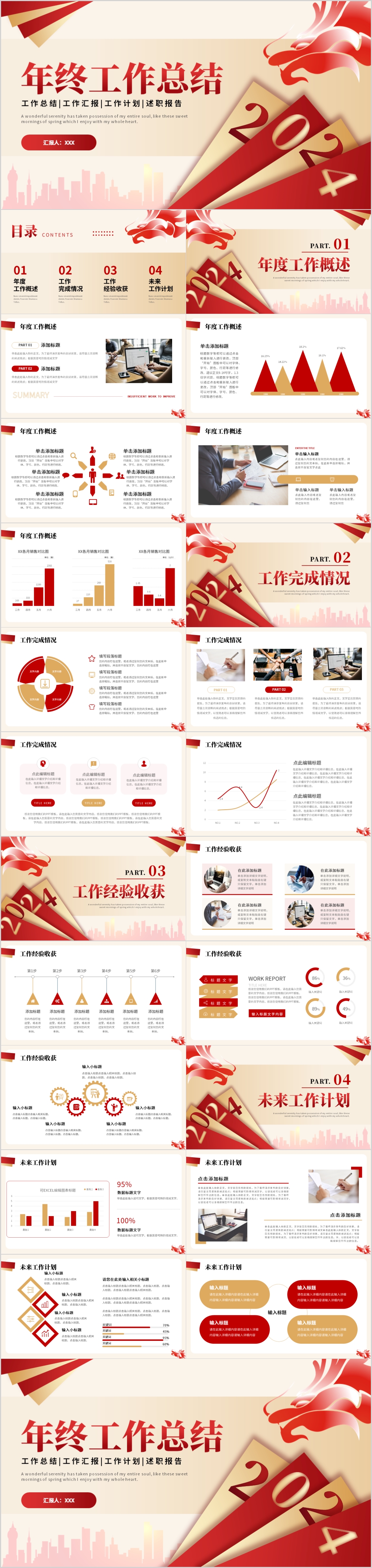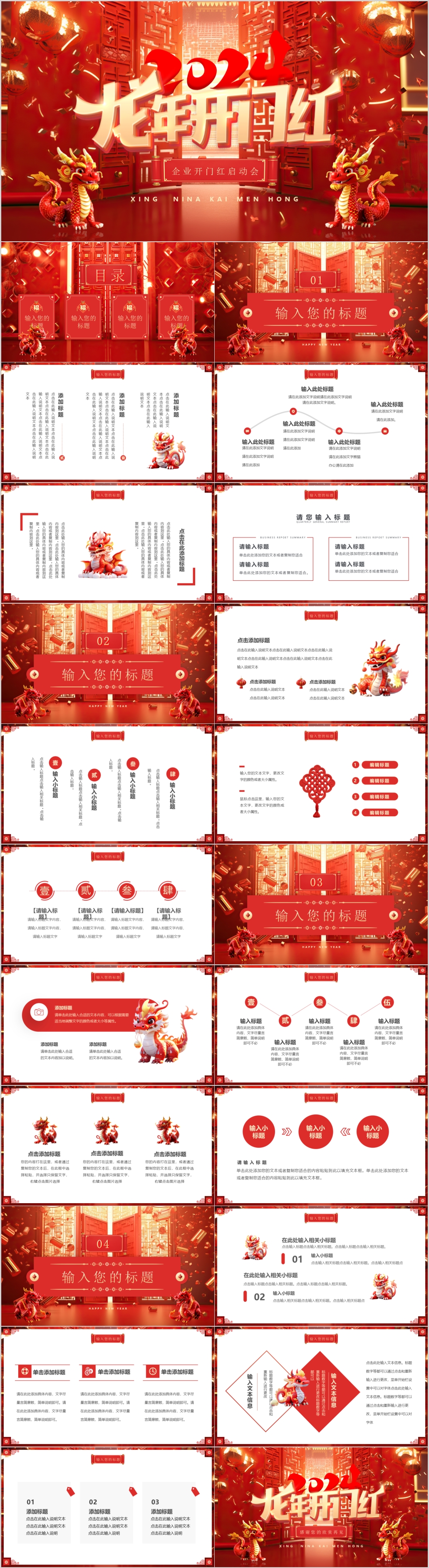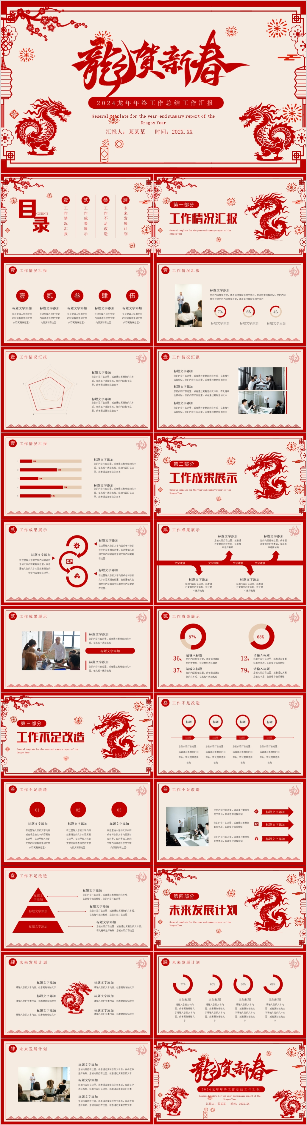 2024红色龙年年终总结暨新年计划通用ppt模板