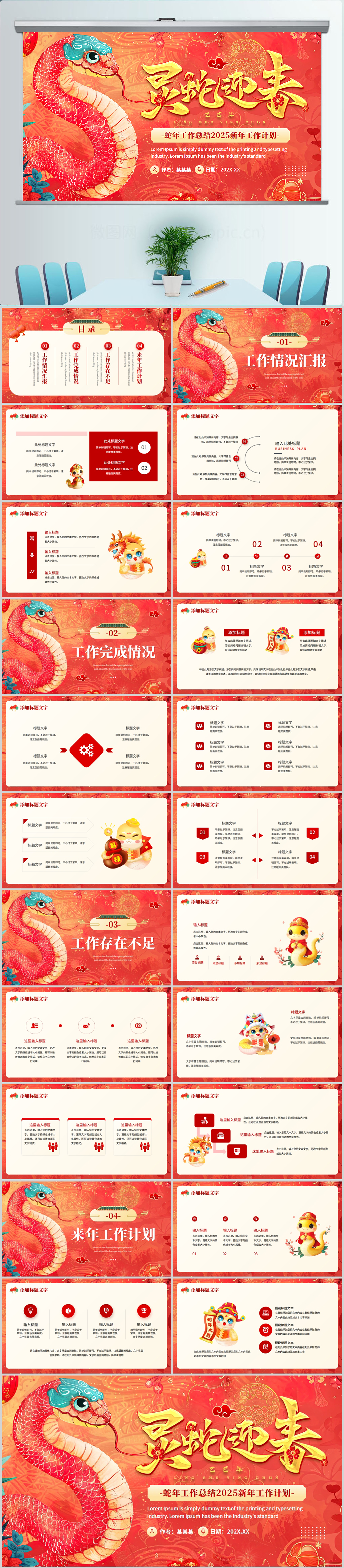 2025蛇年新年节日庆典工作计划通用PPT模板设计