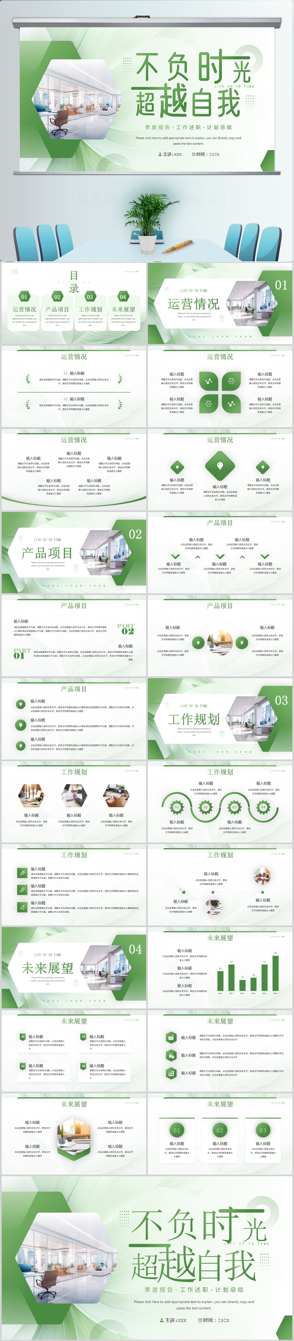 绿色简约风不负时光超越自我工作总结工作汇报
