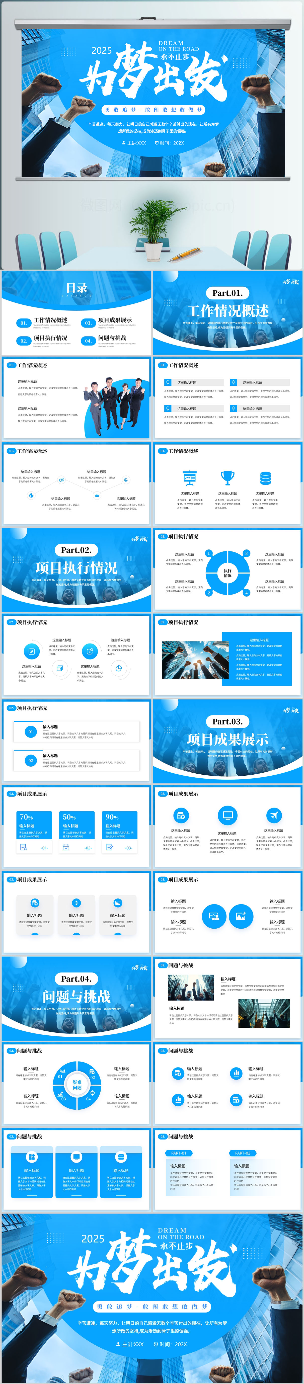 2025蓝色为梦想出发年终总结暨新年计划ppt模板