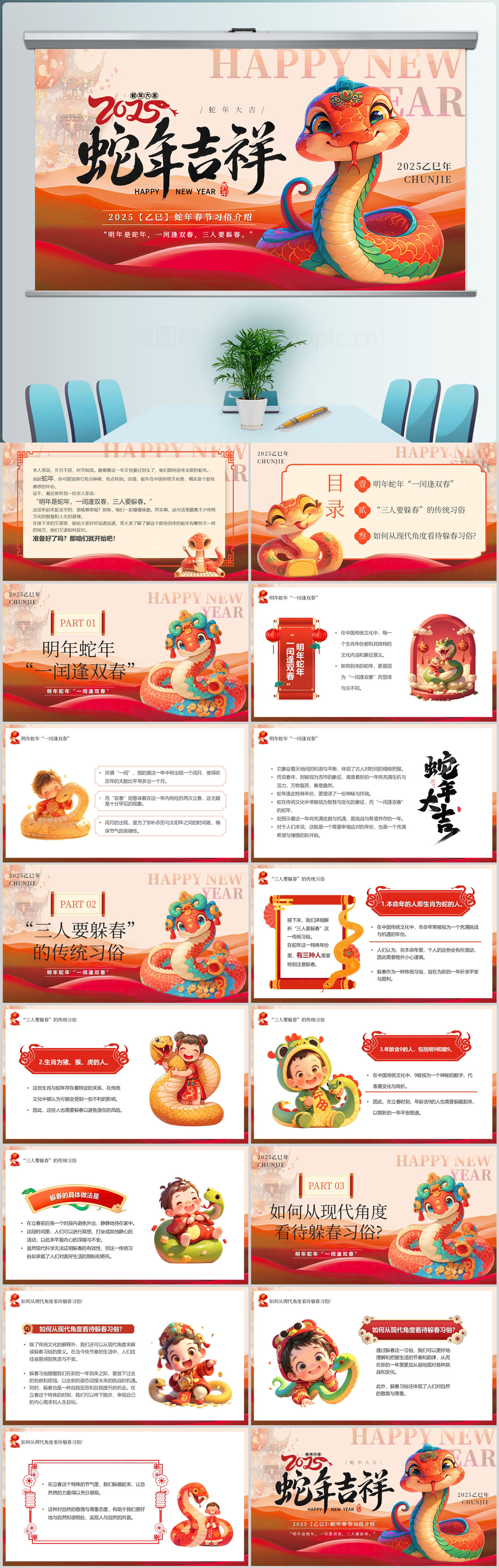 红色国潮风蛇年如意2025蛇年通用ppt模板