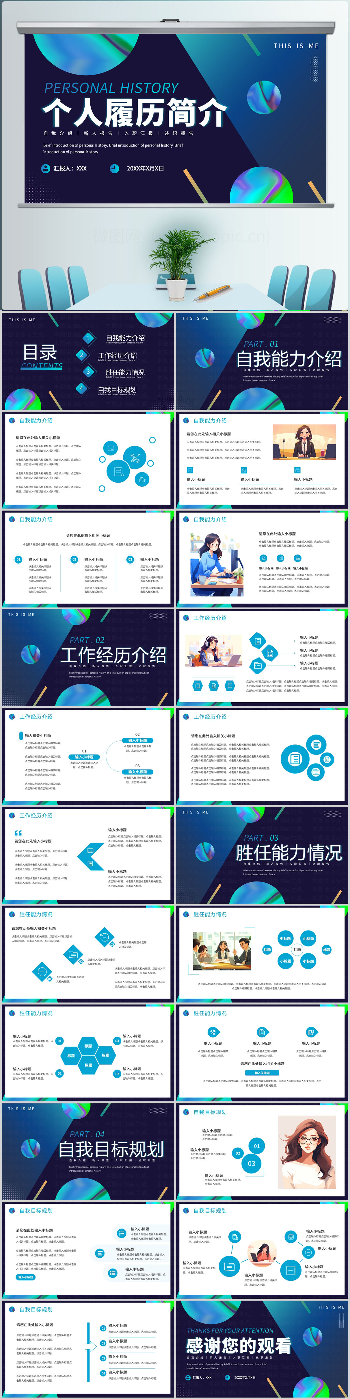 时尚几何渐变个人履历自我介绍PPT模板设计