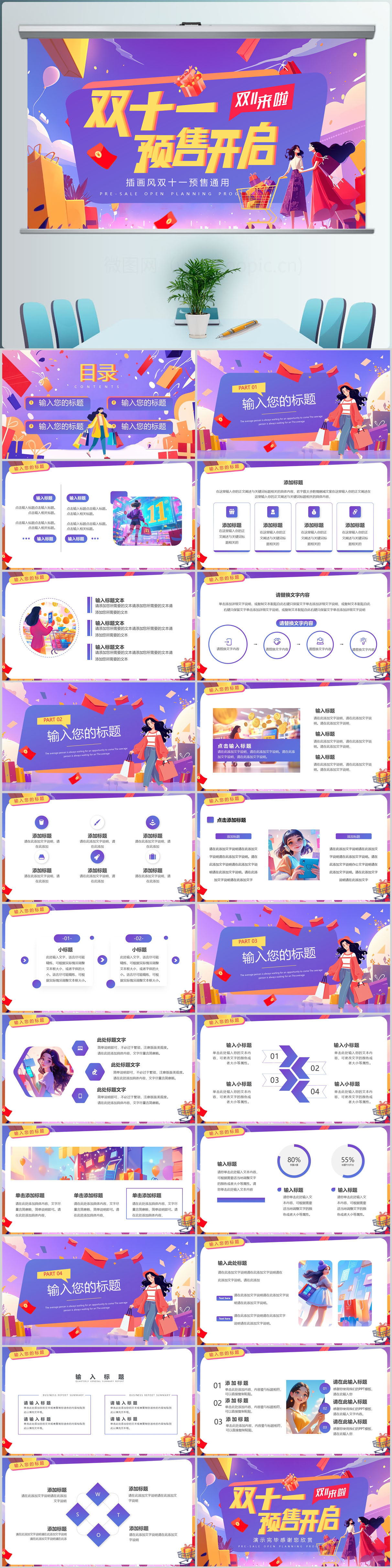 紫色渐变炫酷双十一天猫预售策划PPT模板设计