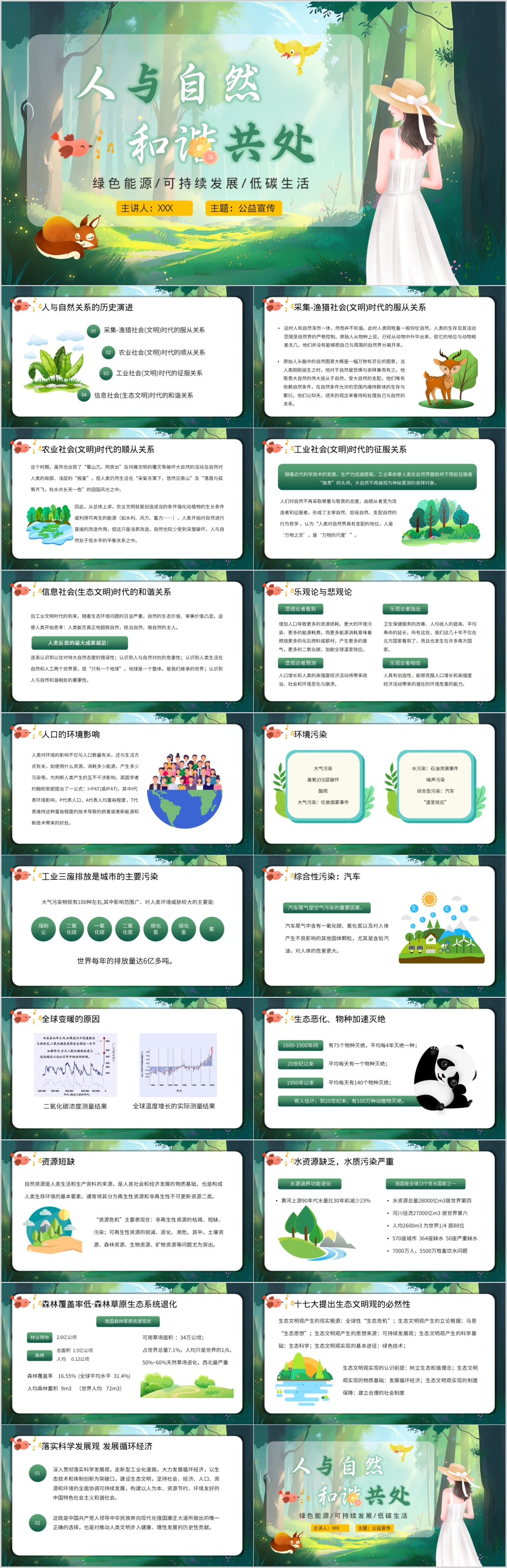 绿色人与自然和谐共处生态环境保护发展ppt模板
