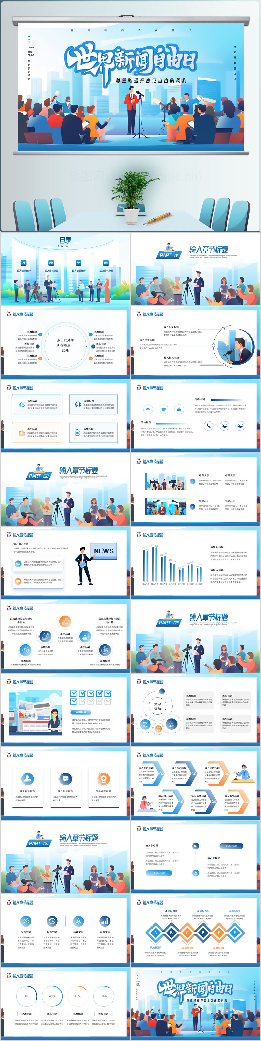 蓝色卡通尊重和提升言论自由的权利世界新闻自