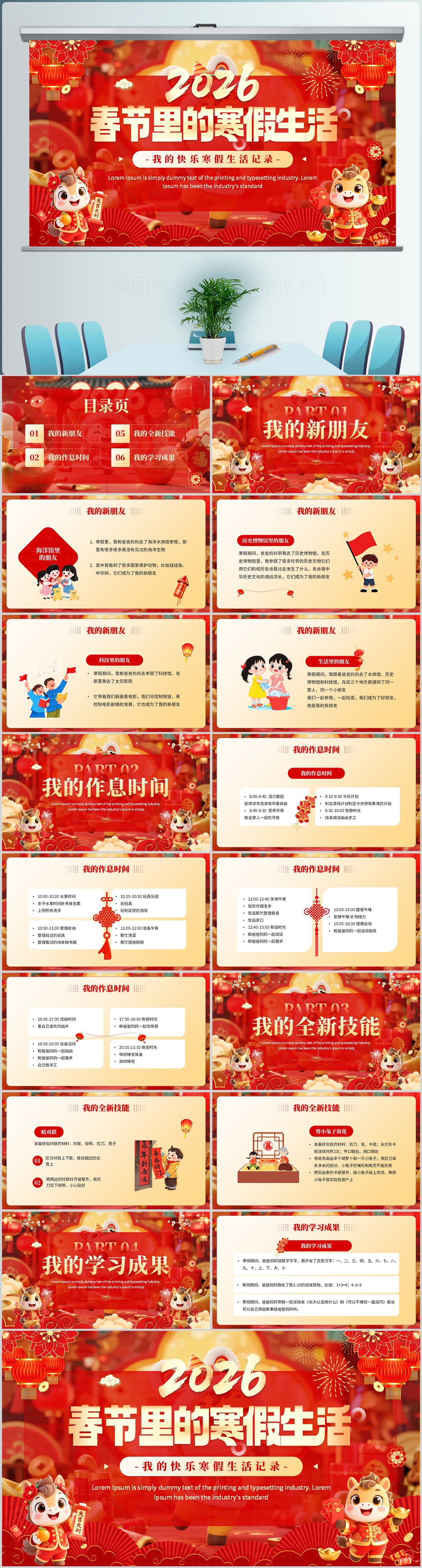 2026红色春节我的寒假生活介绍ppt模板