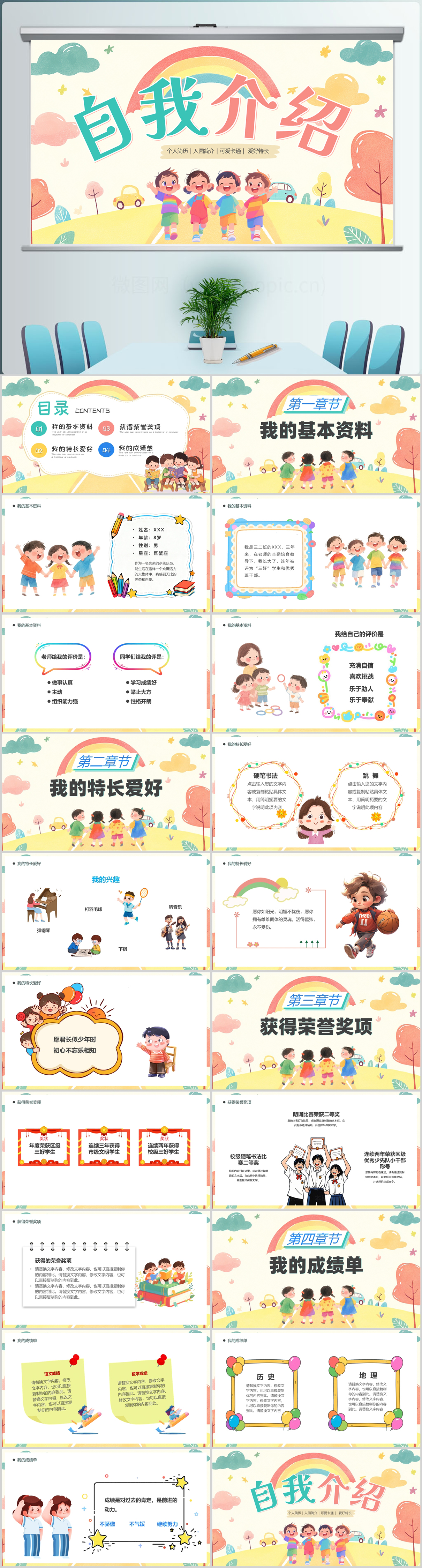 2026儿童卡通风自我介绍宣传课件