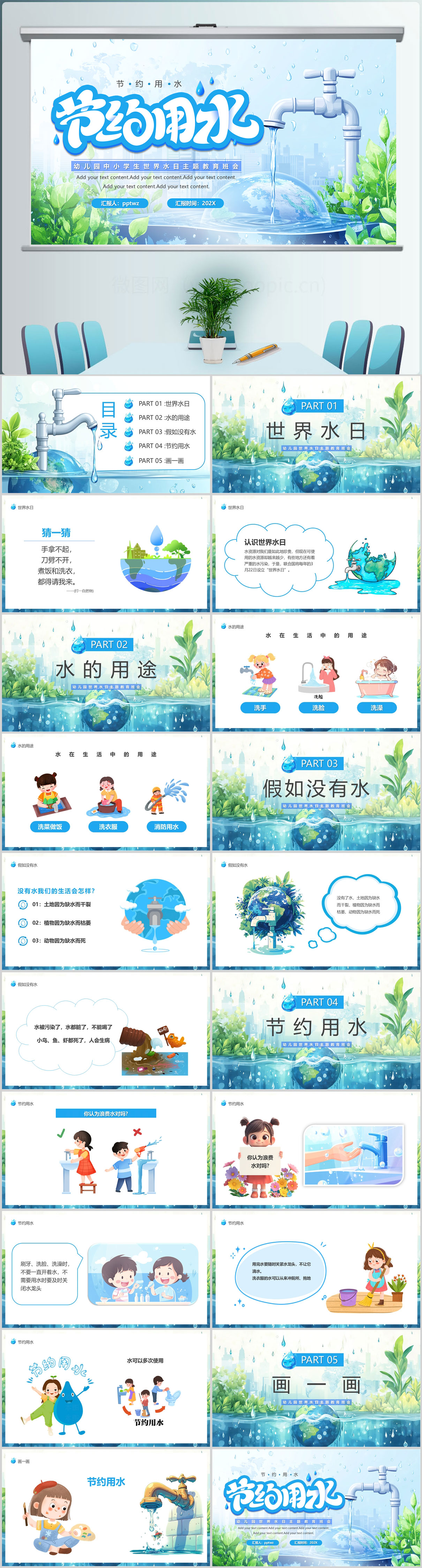 卡通用爱呵护共同成长育儿知识分享培训ppt模板