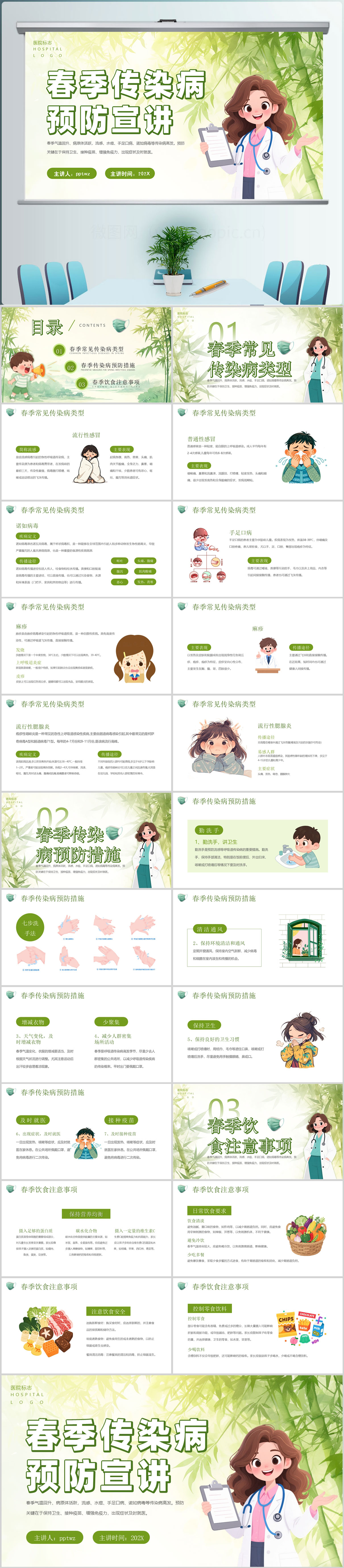 绿色小清新风春季传染病预防宣传介绍PPT模板
