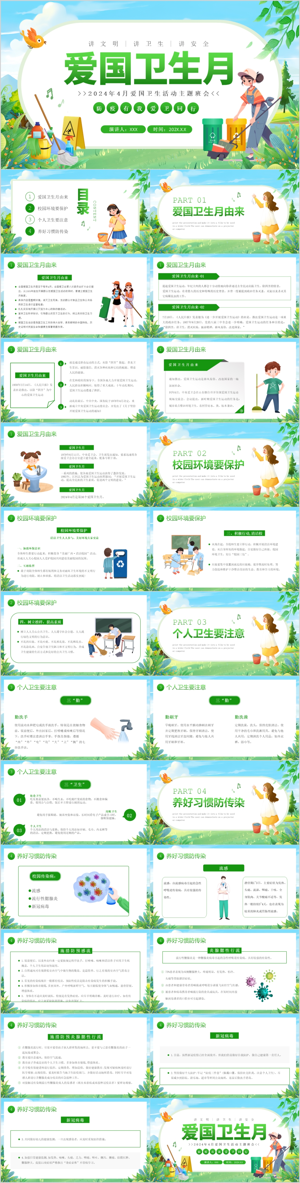2024年4月爱国卫生活动主题班会ppt模板