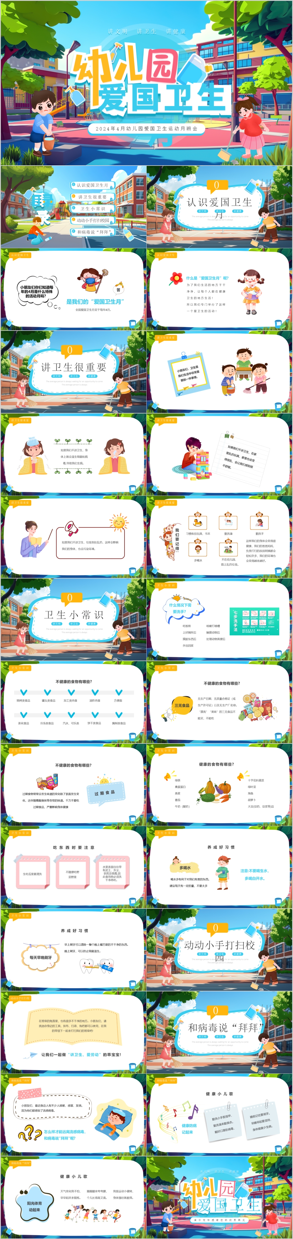 卡通幼儿园爱国卫生月宣传主题活动课件ppt模板