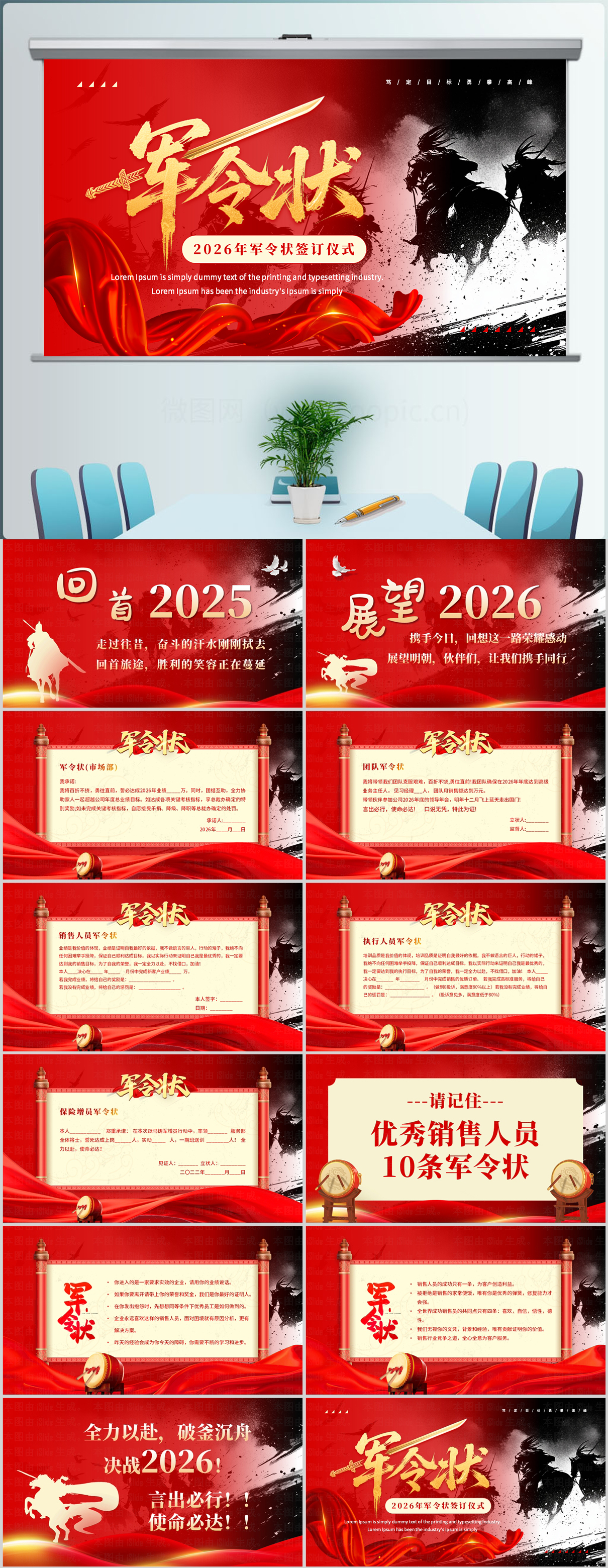 2026马年新年年会颁奖军令状启动签约仪式ppt模板