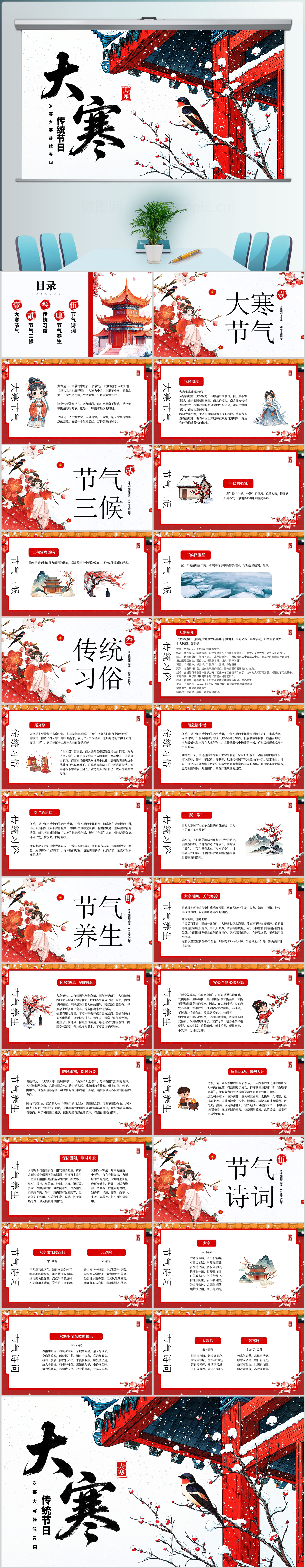 中国传统节日二十四节气大寒节气ppt模板