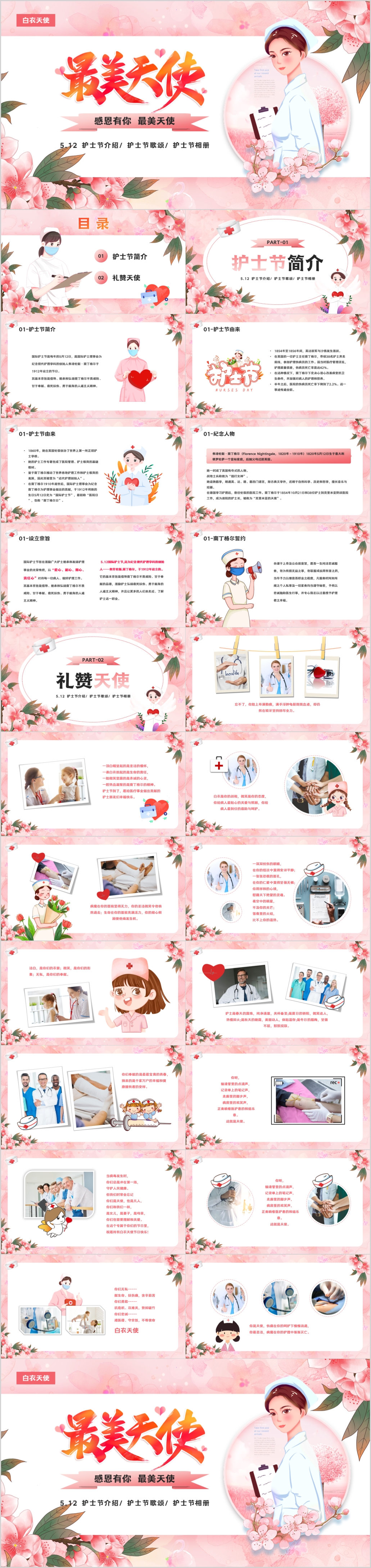粉色温馨花卉感恩有你最美天使5.12护士节电子相