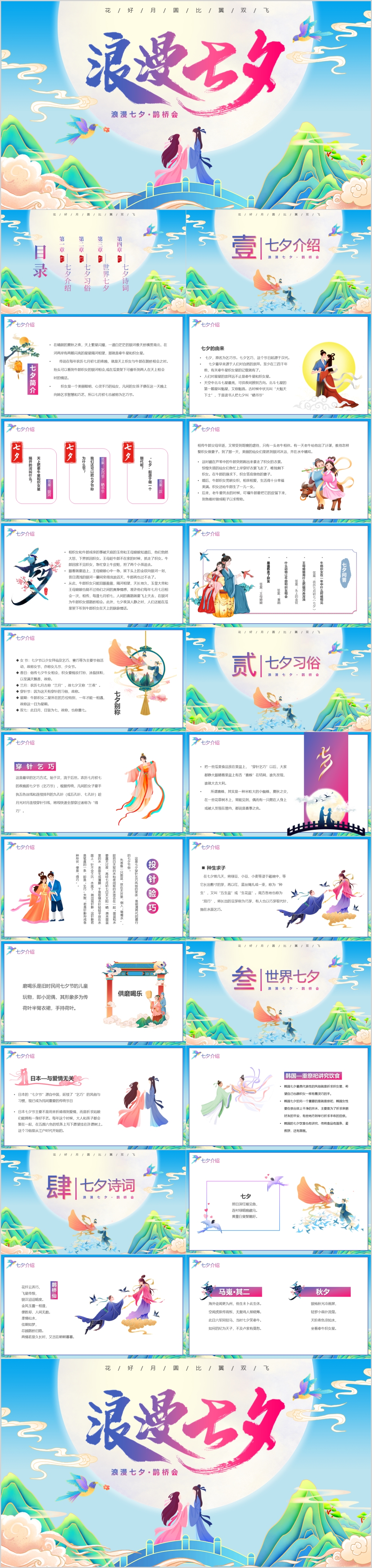 粉色国潮唯美甜蜜七夕节日介绍牛郎织女情人节
