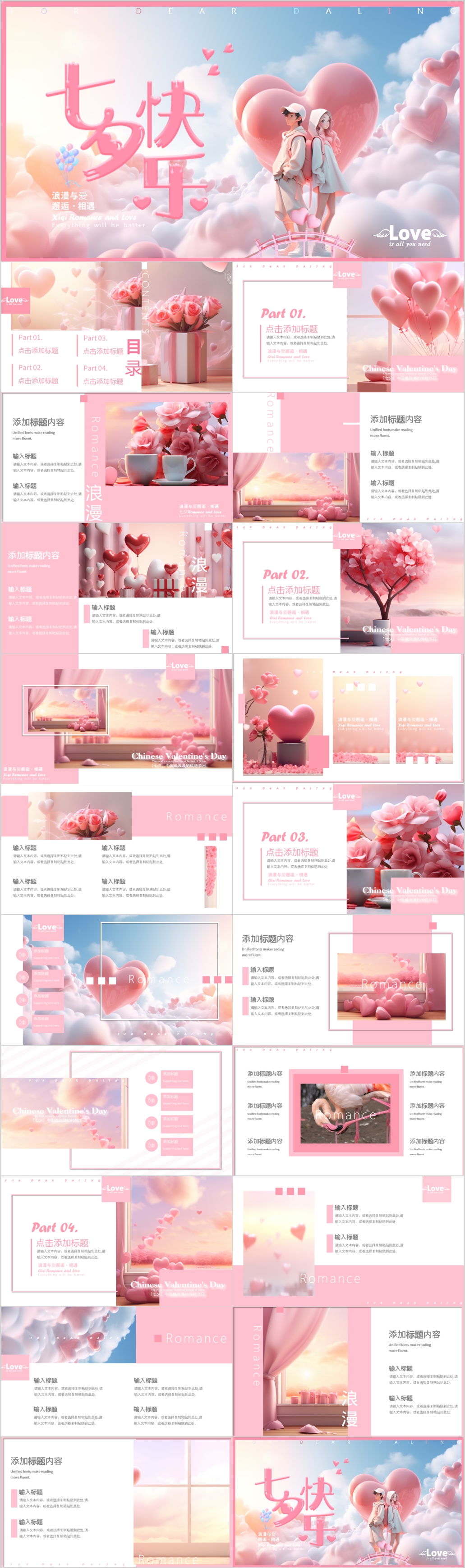 浪漫唯美小清新情人节七夕爱情通用PPT模板