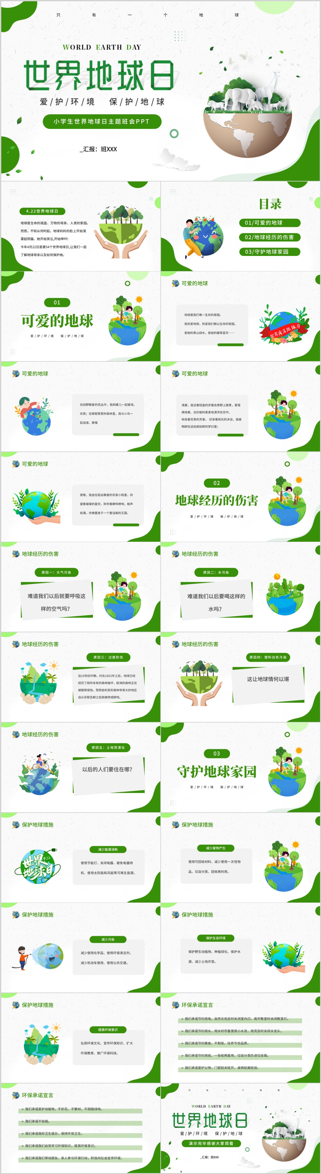 2023年卡通世界地球日绿色环保教育主题课件ppt模