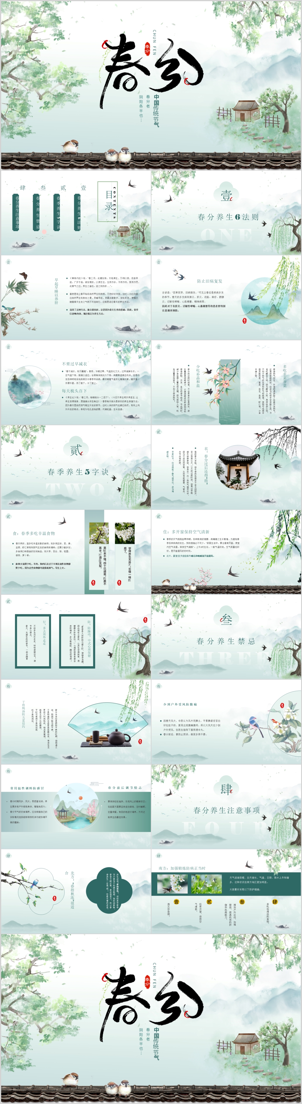绿色温馨二十四节气春季春分通用PPT模板