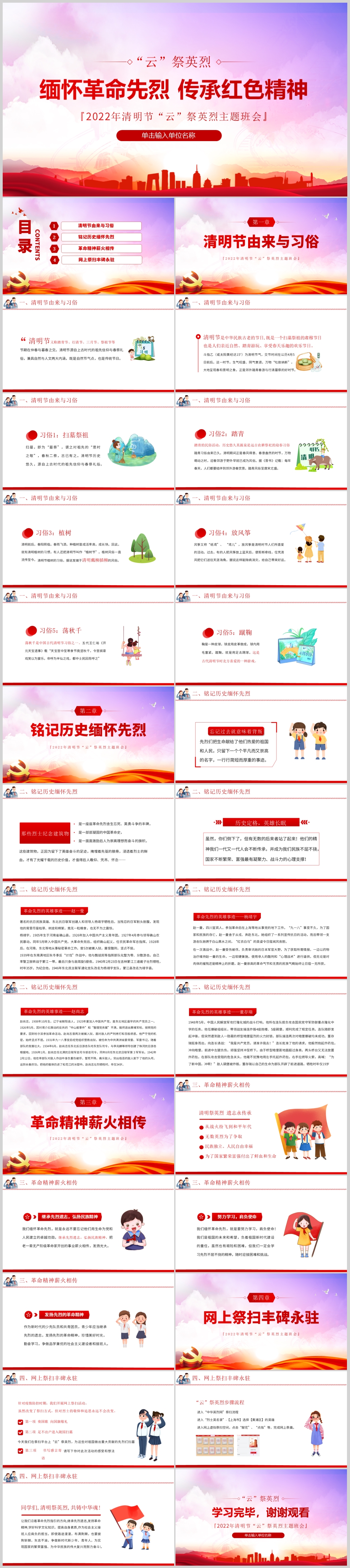 2022年清明节“云”祭英烈主题班会课件PPT模板