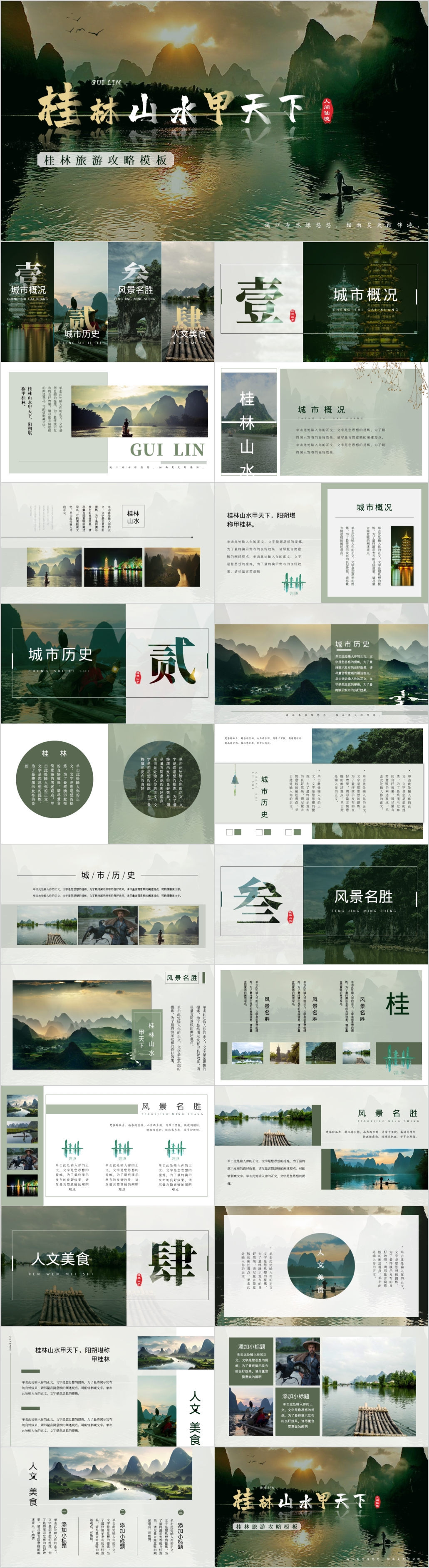 简约通用桂林山水甲天下桂林旅游PPT模板
