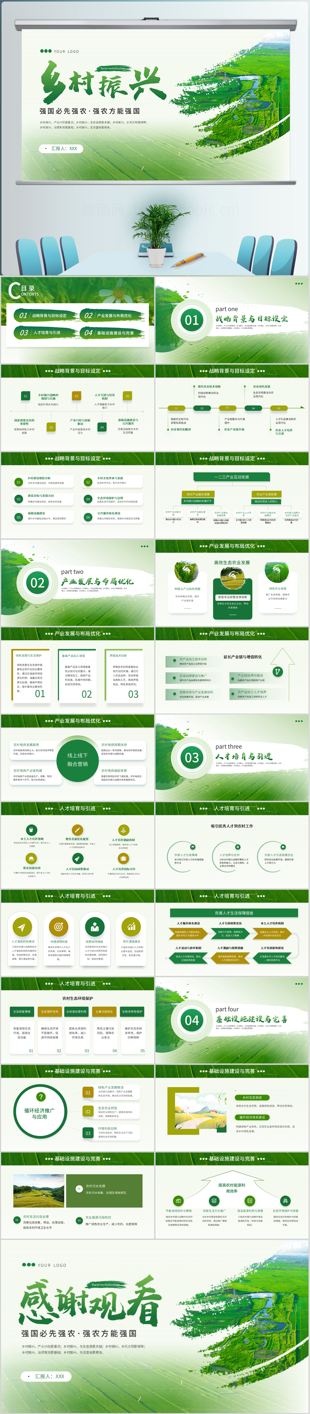 绿色简约农业报告乡村振兴农村农业发展ppt模板