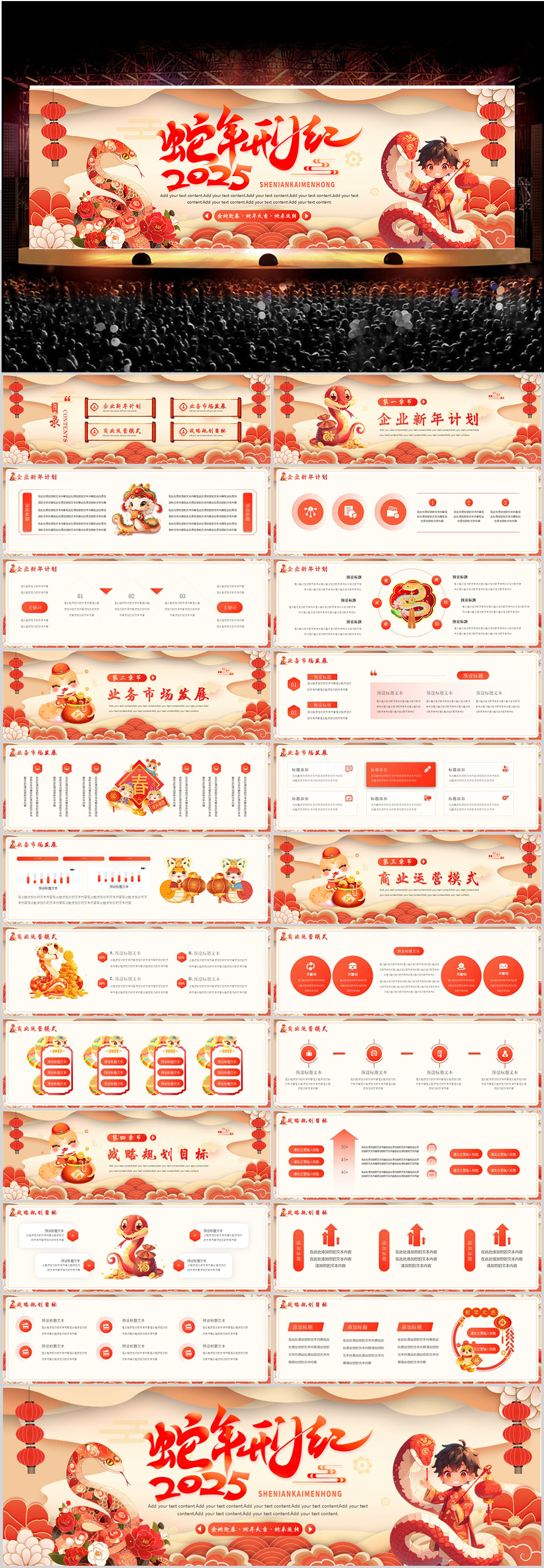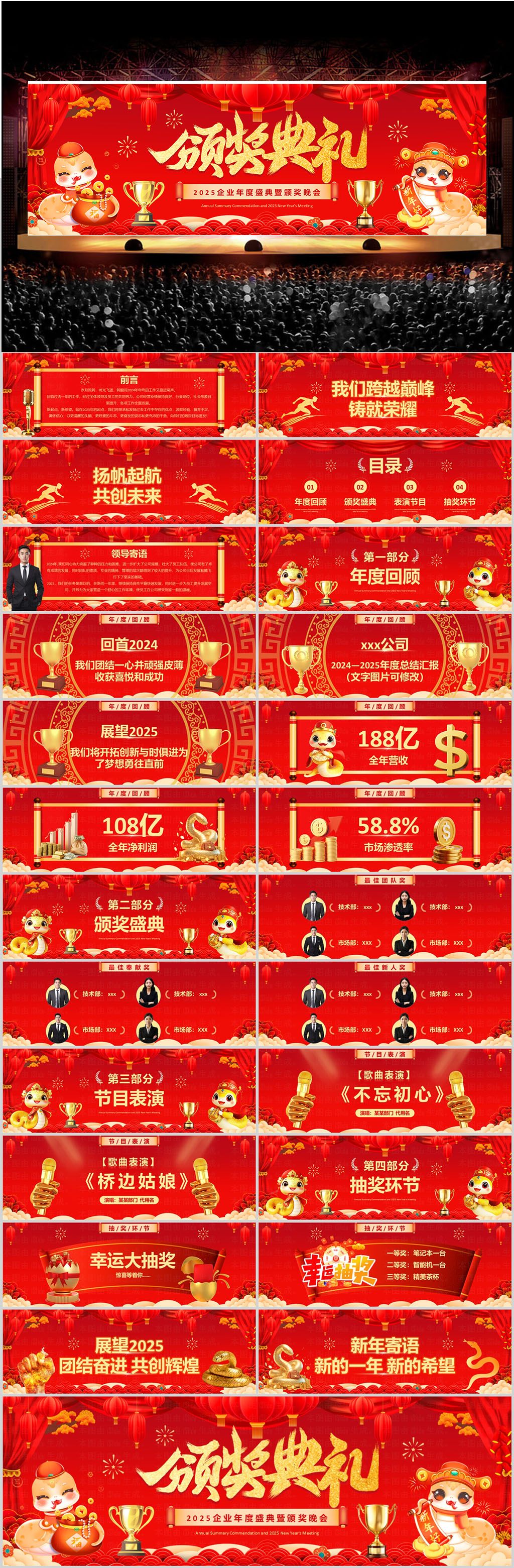 宽屏喜庆风2025企业年度盛典暨颁奖晚会PPT模板设计