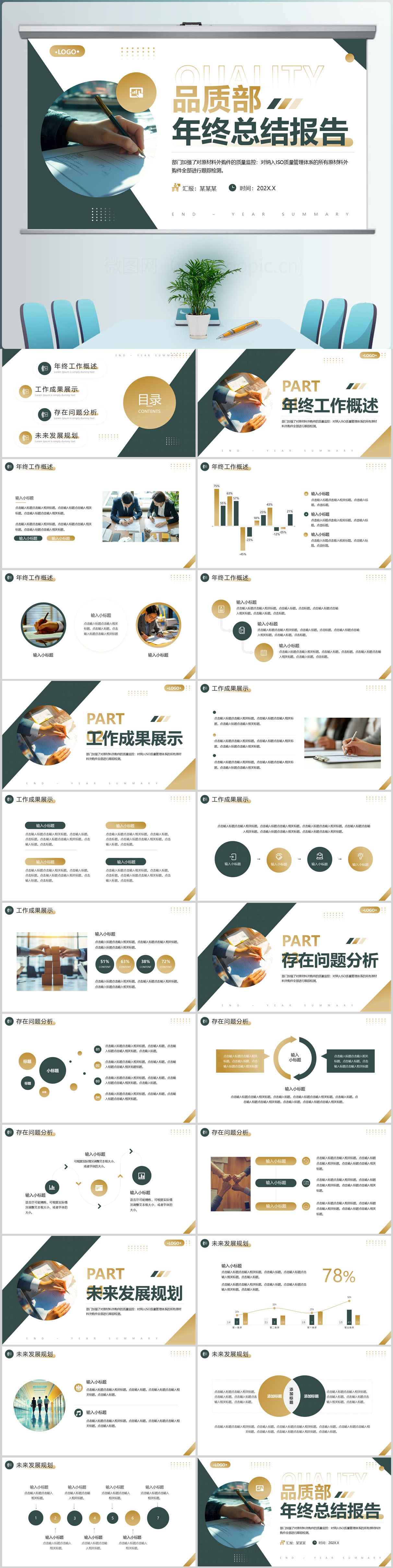 商务风品质部年终总结报告PPT模板设计