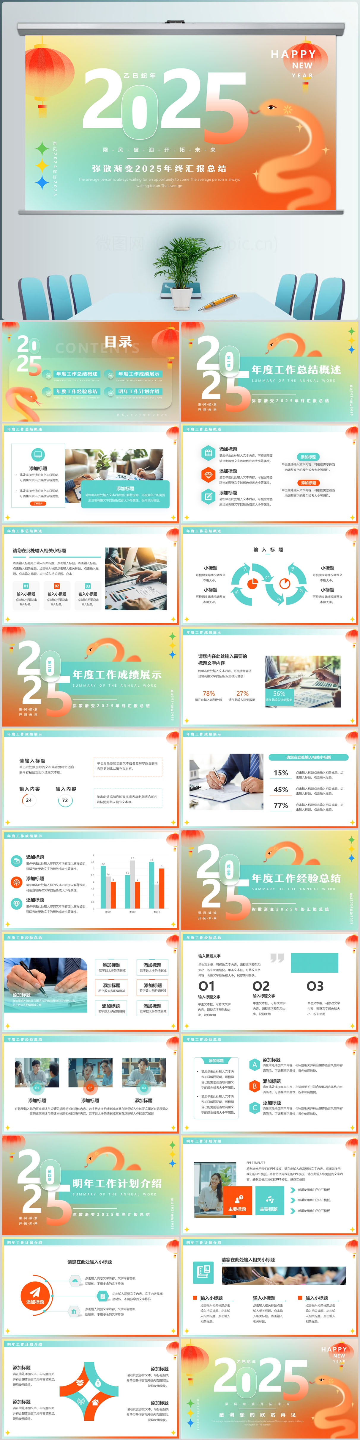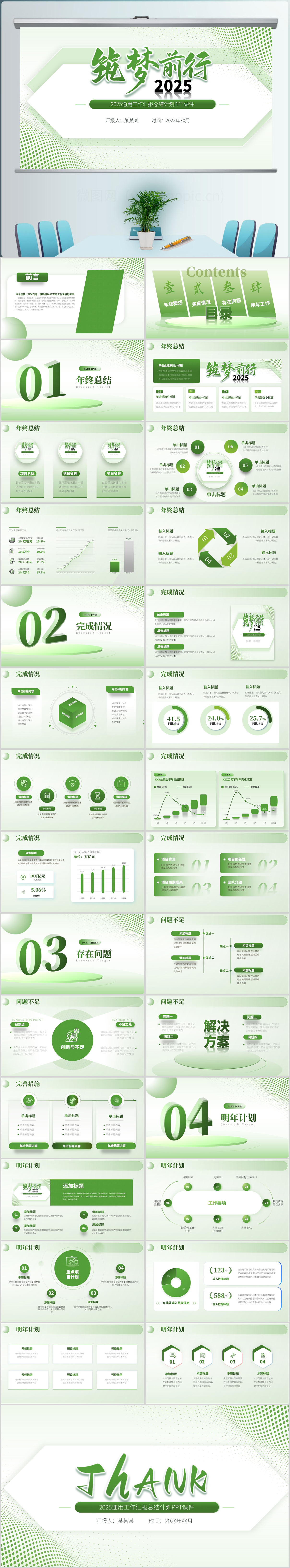 筑梦2025绿色大气年终工作总结暨新年工作计划汇报ppt模板