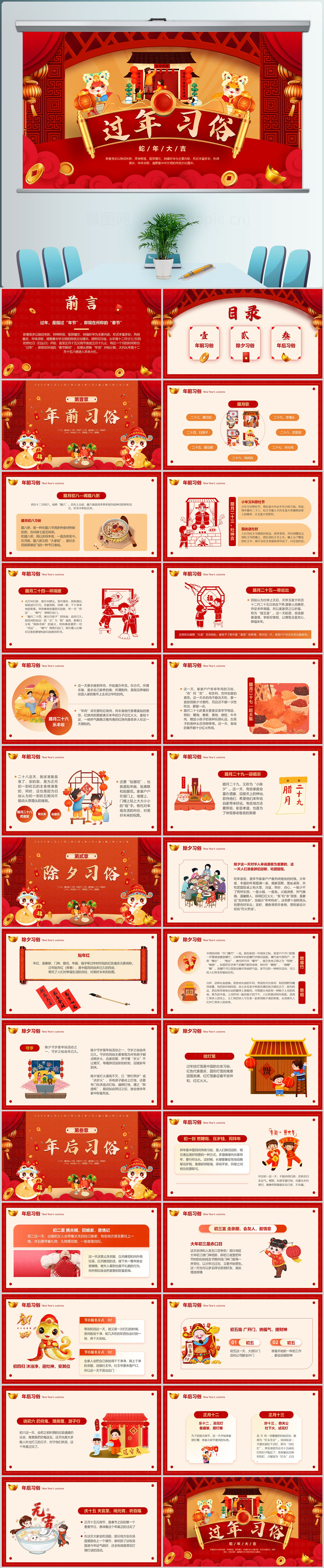 过年习俗介绍PPT模板设计
