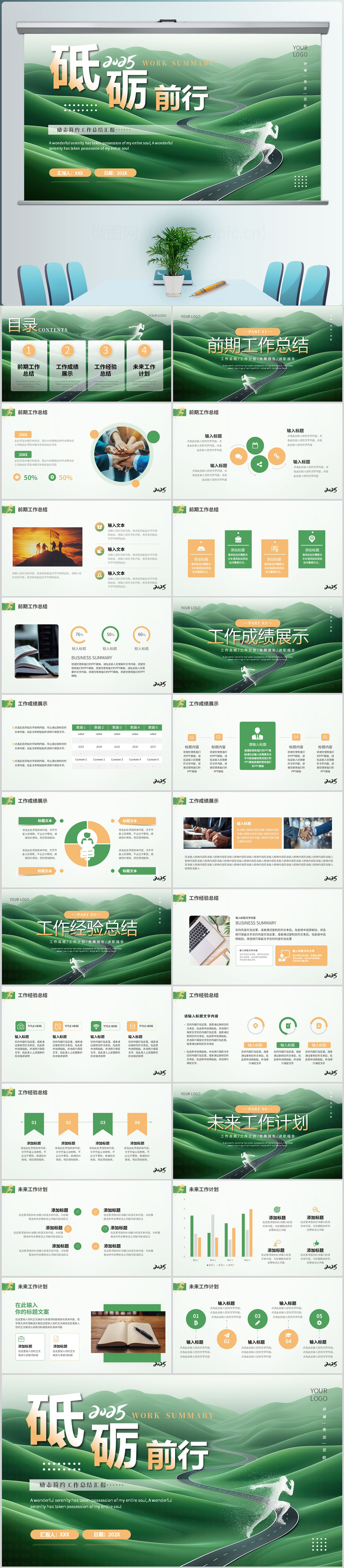 绿色2025励志简约工作总结汇报PPT模板设计
