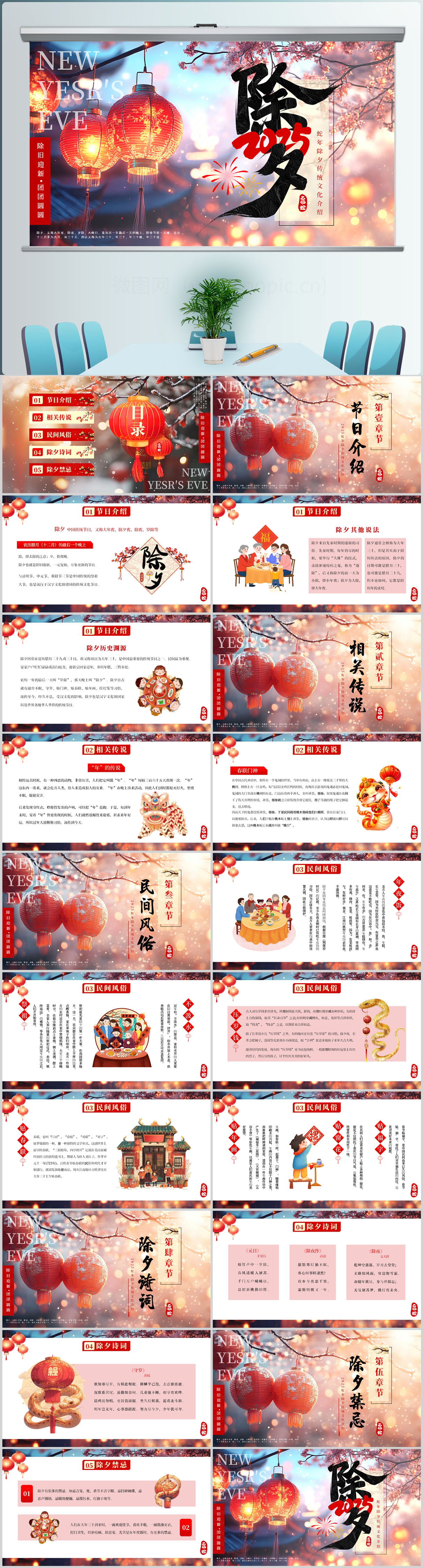 红色除夕故事习俗介绍儿童讲解PPT模板设计