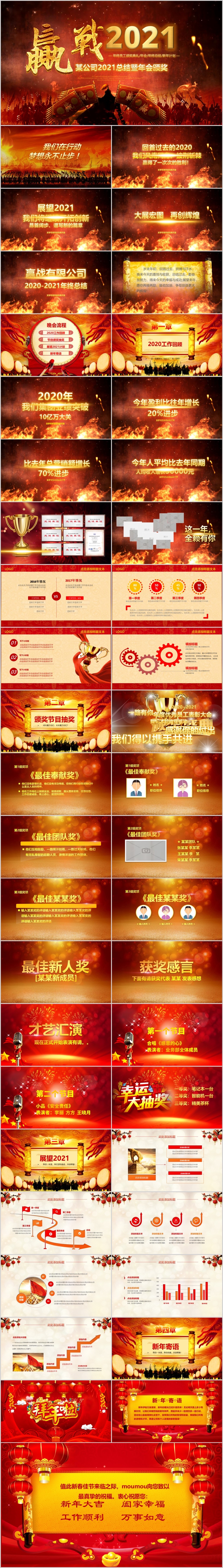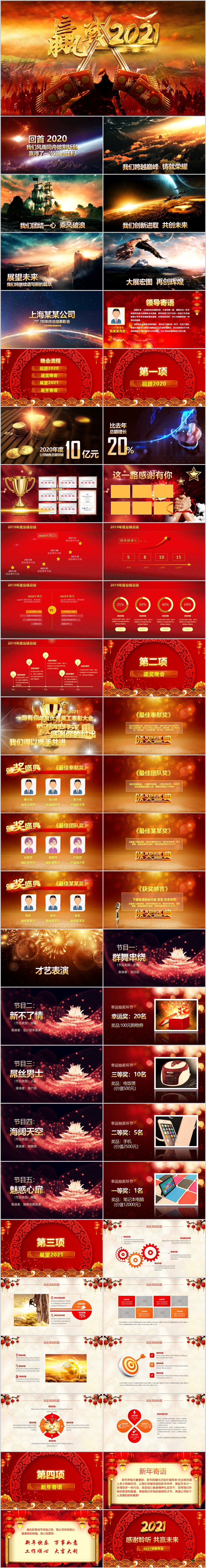 赢战牛年企业年会新年颁奖晚会ppt模板