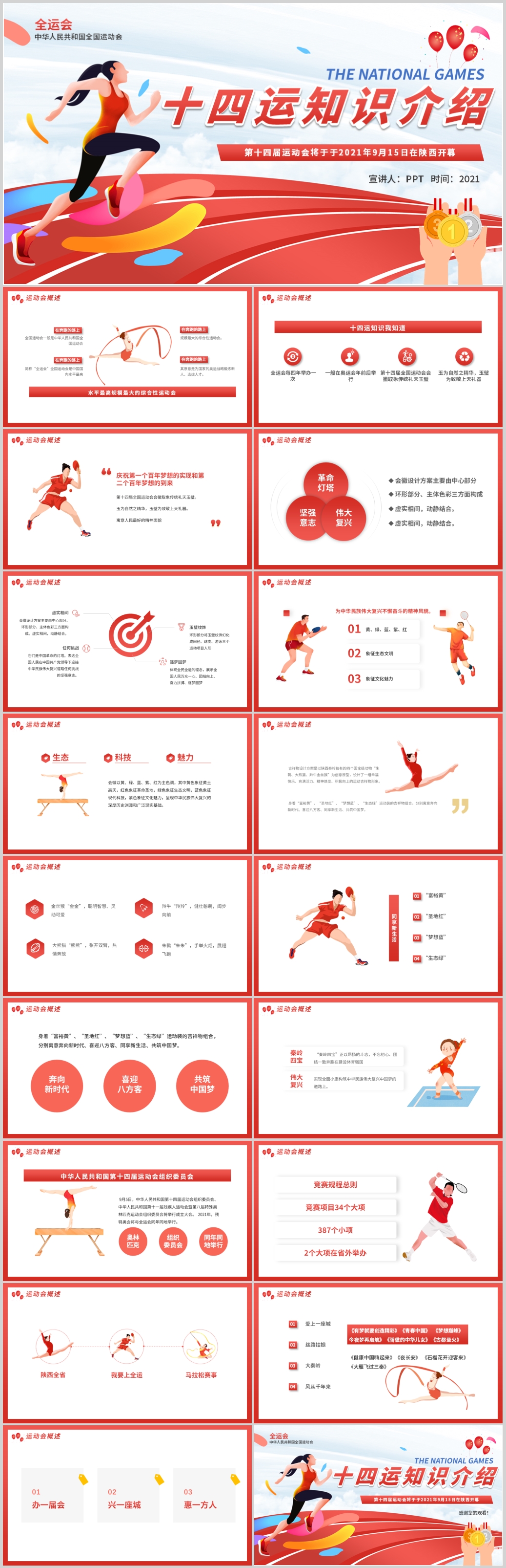十四运知识介绍全民运动会通用工作报告PPT模板