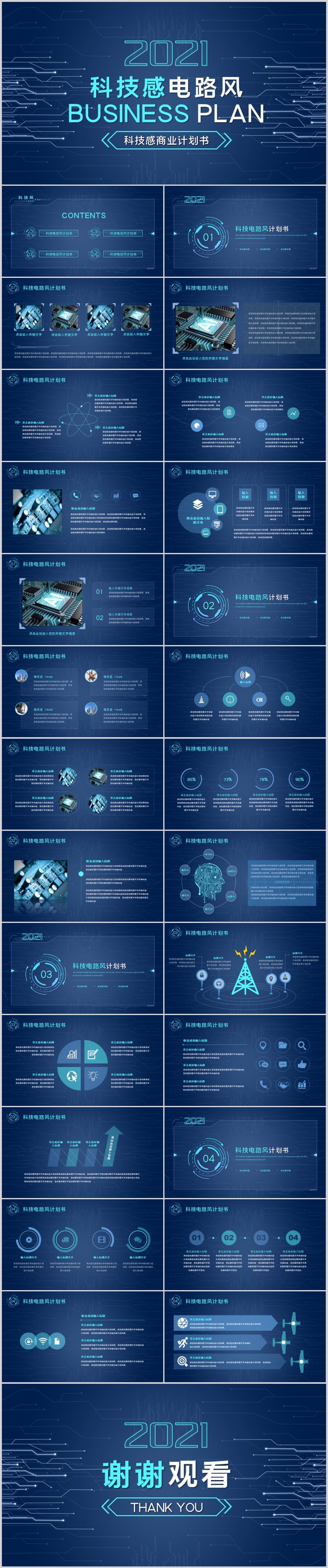 蓝色互联网科技风电路背景人工智能科技商务动态PPT模板